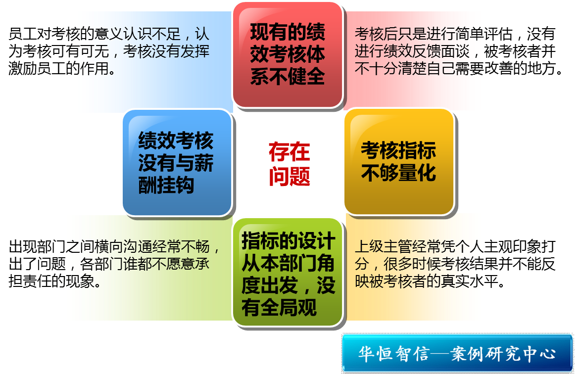 现有的绩效考核体系不健全,考核后只是进行简单的评估,没有进行绩效反馈面谈,被考核者并不十分清楚自己需要改善的地方,因此,公司的绩效考核体系并没有真正做到改善员工绩效,实现员工与企业共同发展之目的。