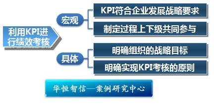 另外,KPI是对重点经营活动的衡量,而不是对所有工作过程的反映。每个职位的工作内容都涉及不同的方面,高层管理人员的工作任务更复杂,但KPI只对其中对公司整体战略目标影响较大,对战略目标实现起到不可或缺作用的工作进行衡量,因此,企业在利用KPI进行绩效考核时,需要注意两点:一是宏观上,KPI要符合企业发展战略的要求,其制定是组织上下认同的,而不是由上级强行确定下发的,也不是由本职职位自行制定的,它的制定过程由上级与员工共同参与完成,是双方所达成的一致意见的体现;二是在具体实施过程中,需要考核者和被考核者明确组织的战略目标以及实现KPI考核的原则,从而避免理解偏差带来的指标过分细化、关键指标遗漏、指标“中庸”、偏离目标、考核周期过短等问题。