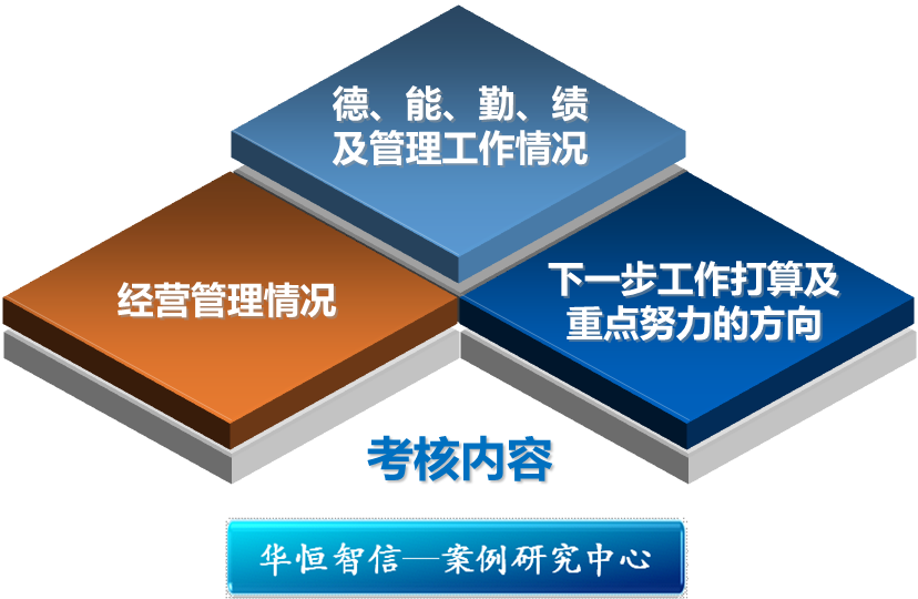 考核的内部主要包含三个方面:被考核单位的经营管理情况,包括该单位的财务情况、经营情况、管理目标的实现等方面;被考核者的德、能、勤、绩及管理工作情况;下一步工作打算,重点努力的方向。具体的考核细目侧重于经营指标的完成、政治思想品德,对于能力的定义则比较抽象。各业务部门(子公司)都在年初与总公司对于自己部门的任务指标都进行了讨价还价的过程。