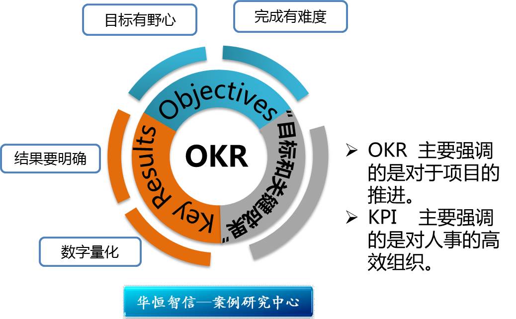 通过两者的对比能够看到,OKR主要强调的是对于项目的推进,而KPI主要强调的是对人事的高效组织,前者要求的是如何更有效率的完成一个有野心的项目,而后者则强调的是如何保质保量的完成预定目标。