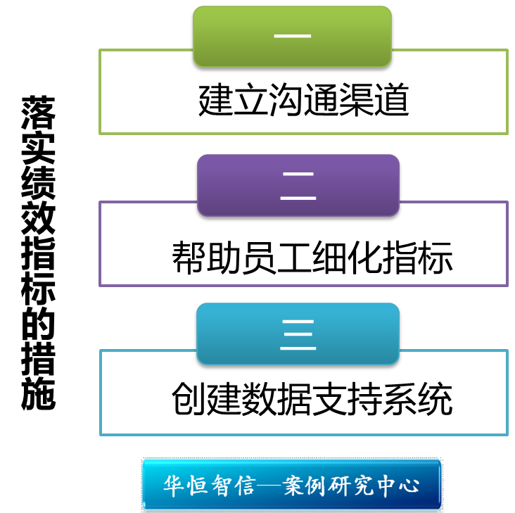 高效的人才管理模式,会为企业减少冗杂人员,改善员工绩效,实现企业与个人共赢的局面。上海大众在其人才管理模式中对知识型员工的绩效管理,为其他企业的人才管理提供了宝贵的经验,那么科学的绩效管理的实行,除了上海大众在人才评估打分时提到的建议外,还应该考虑到绩效指标的有效落实。实现绩效指标的有效落实可以采取以下三种措施: