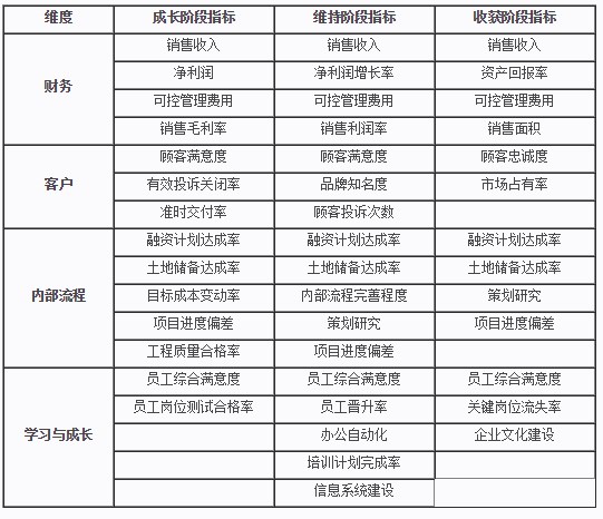 房地产企业不同发展阶段BSC绩效评价指标体系