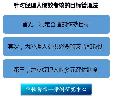 目标管理法源于美国著名管理学家彼得•德鲁克,主张让管理者和员共同制定工作目标,在工作实现员工的自我控制并努力完成目标的管理制度,很多知名企业(如华为、惠普等)都在运用目标管理进行绩效管理。本文通过主要介绍了怎样运用目标管理法对经理人进行评估,以及目标管理法运用时存在的问题。基于此,华恒智信分析员认为,针对经理人绩效考核,可以通过以下几点实施目标管理法: