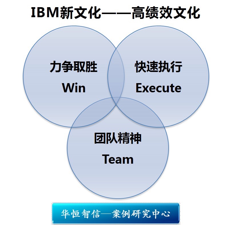曾经被认为“一只脚已经踏进了坟墓”的蓝色巨人IBM,于九十年代初,在郭士纳掌舵IBM之后,开始着力建立以个人业绩评估计划(PBC)为基础,从点绩效(个人)、线绩效(流程)和面绩效(整体)三个层次相结合的绩效管理体系。尤为重要的是,郭士纳明确地改变了由IBM创始人老沃森提出的“精益求精、高品质的客户服务和尊重个人”核心价值观,创立了IBM的新文化,这就是由“力争取胜(Win)”、“快速执行(Execute)”和“团队精神(Team)”组成的IBM“高绩效文化”。与老沃森的基本价值观相比,郭士纳的基本价值观没有什么特别之处,但这些基本价值观正是IBM所失落的。在新的IBM文化内核——高绩效文化的强力牵引和整合下,通过艰难的业务流程变革,蓝色巨人重新走向舞台,郭士纳也解决了大象跳舞的问题。