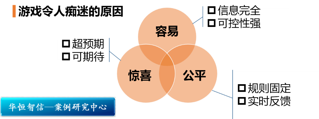 华恒智信认为,游戏之所以能令人痴迷,有三点比较显著的原因: