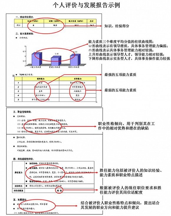 由此,提出被评价人的岗位适配性评价和个人发展建议,为每位中高层管理者提供一份《个人评价与发展报告》(参见下图)。