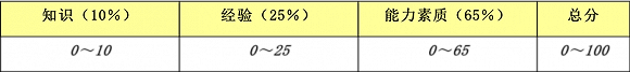能力素质得分=【∑(能力素质要项实际得分)/∑(能力素质要项满分)】×65