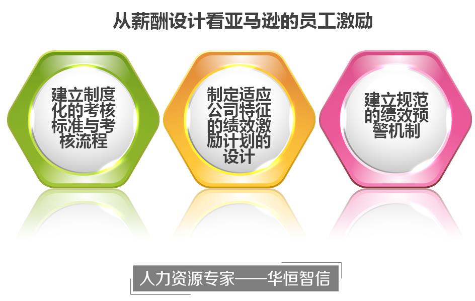 亚马逊建立了制度化的考核标准与考核流程之后,使每位员工在企业中清晰了自我定位,对工作方式、工作内容、工作结果都进行了方向性指导,这使得企业效率大为提高,员工目标感十足。华恒智信认为,每个企业都应该根据公司业务、组织结构的实际情况编制适合公司特征的考核制度和考核流程。首先公司应该根据企业在特定时期内的目标在各个部门间进行目标系统化分解,使各部门明确自我定位。其次各部门根据自身特点和岗位要求动态建立制度化的考核标准与考核流程。最后,将部门考核目标分解为个人考核目标,通过个人考核的综合达到部门总考核目标。通过制度化的考核体系传达企业绩效预期的信息,刺激企业中所有的员工来达各自的工作目标。但需要注意的是,不管是从公司到个人的考核,都不能脱离行业实际盲目拔高或压低,应内外结合,达到内外满意的程度。
