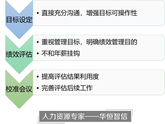 再次,谷歌通过开展校准会议和绩效面谈,提高了OKRs评估结果的利用度。绩效的结果反馈与落实在绩效评估中是非常重要的一环,决定着绩效管理的最终效果,很多公司在评估绩效之后,没有健全后续工作,缺乏进一步沟通。同样,这也是只关注绩效评估而忽略绩效管理的体现。华恒智信在多年服务企业的过程中结合国人特征设计了一套目标绩效管理体系,主要包含四个阶段:岗位分层分类,任务指标落实与下达,过程检查与监督,结果反馈与落实。四个环节缺一不可的绩效管理体系才能够真正有效运行与支持企业发展。