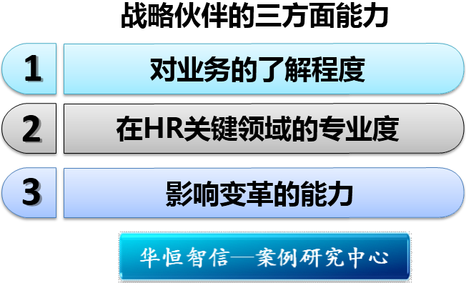 HR三方面的能力决定其是否能够担当战略伙伴的角色。一是对业务的了解程度。包括对竞争对手、公司的战略、财务、客户的需求等,这是一个业务主管必须了解的,作为HR也必须能够做到这些。第二,在HR关键领域的专业度行不行。比如,招聘,是否能在企业需要人才的时候,招到人,掌握人才最好的招聘渠道是什么,什么是有效的培训方法,雇主品牌怎么做。对于激励来说,股权怎么设计,发给谁,发多少,怎么发。第三,影响变革的能力。HR能不能和业务主管沟通,让业务主管认识到你方案的重要性,而且愿意配合你去实施。这是非常关键的、非常难的一点。也就是说,决定一个HR是否优秀,在于其能不能把一些好的方案落定、实施,在于其对业务主管的影响力如何。