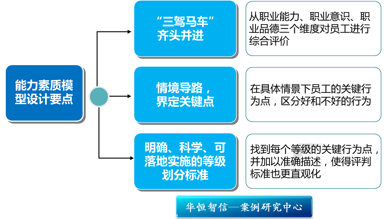 第三、关键行为点——明确、科学、可落地实施的等级划分标准。减少定性描述和简单的“比较”、“一定”、“很”、“非常”等形容词描述。在能力素质模型等级标准的制定上,注重直观性、可行性和具体性,处于不同等级的员工,其行为表现必然存在差异,找到每个等级的关键行为点,并加以准确描述,使得评判标准也更直观化,这样管理者在对员工进行评价时依据各自的行为特征即可对应到相应的等级描述中。同时,对员工提供了有效的行为引导和提升的方向。