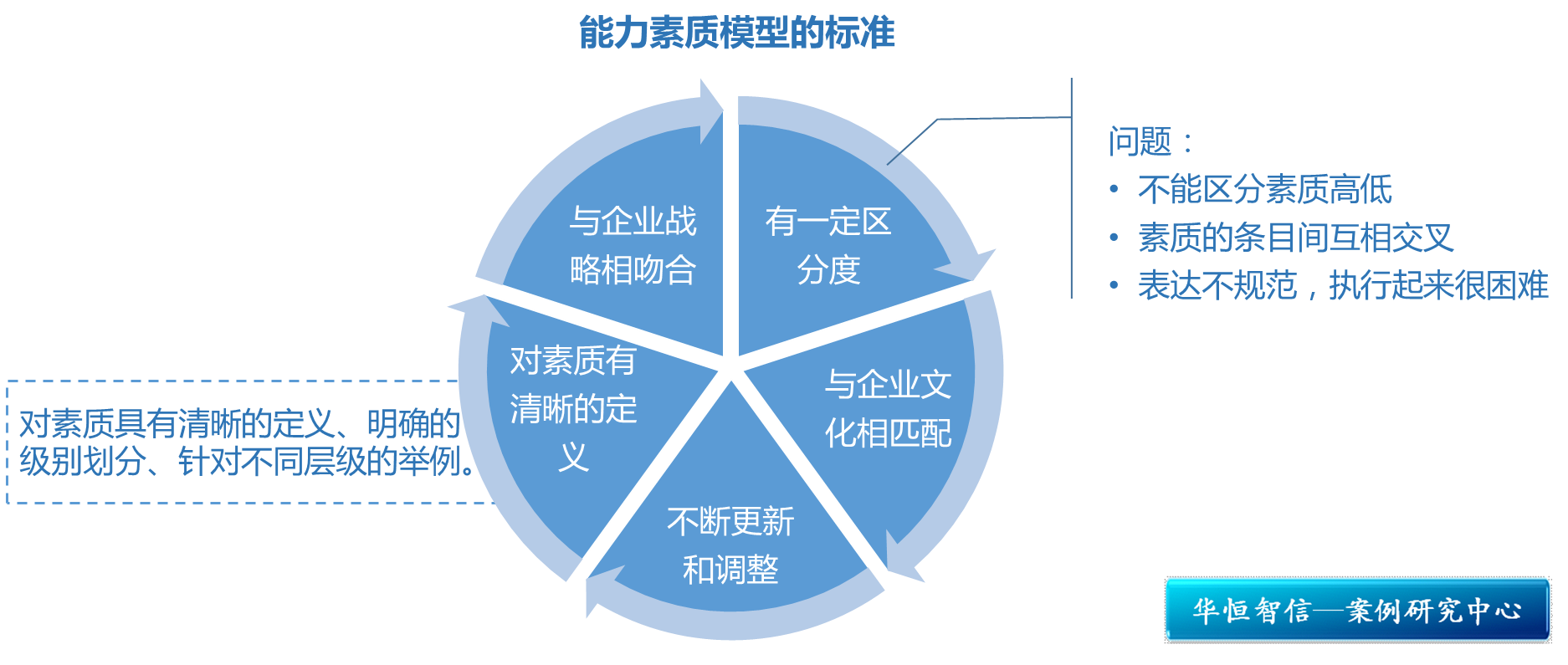 首先,要具有一定区分度。符合这个标准的员工一定能够达到优秀的绩效目标。就好比,如果高考考题出得好,得到高分的人就一定是优秀的。前些年,我给一家德资公司做项目,发现他们的素质模型并没有中国化,是不合格的。一是只能简单地区分是否具有某项素质,不能区分素质高低;二是素质的条目间互相交叉,比如,当出现沟通行为时,不知道究竟应该归到“具有沟通能力”一项呢,还是归到“具有说服力”一项;三是表达不规范,执行起来很困难,尤其是一些动词的使用,比如界定“认真”,应尽量用行为动词和名词,少用形容词和副词,像“参加每次会议,会后写心得体会”这样的表达就更具有操作性。