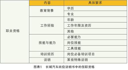 长城汽车公司为适应企业的高速发展,培养符合岗位要求的专业人才,探索企业实际,规范了各岗位的任职资格,建立了独具特色的任职资格管理体系,为人才培养提供了依据。