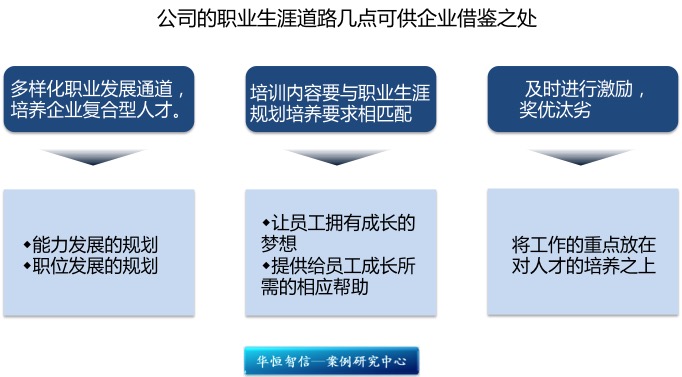 作为一家发展迅速的民营企业,铁骑力士根据公司发展的需要,将公司的岗位设计与员工职业生涯发展相结合,设计出一套与公司现状相匹配的职业生涯道路。针对铁骑力士的措施以及多年来在晋升机制方面的项目经验,华恒智信总结出如下几点可供企业借鉴之处。