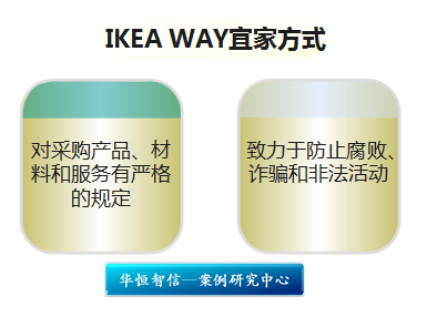 它另一个突出的特点是致力于防止腐败、诈骗和非法活动,制定有相关的《防止腐败规则》。瑞典宜家(IKEA)是20世纪中少数几个令人眩目的商业奇迹之一,1943年初创从一点“可怜”的文具邮购业务开始,不到60年的时间就发展成为在全球共有180家连锁商店,分布在42个国家,雇佣了7万多名员工的企业航母,成为全球最大的家居用品零售商,还赢得了Interbrand发布的TOP100全球最有价值品牌中排名第44位的荣誉。