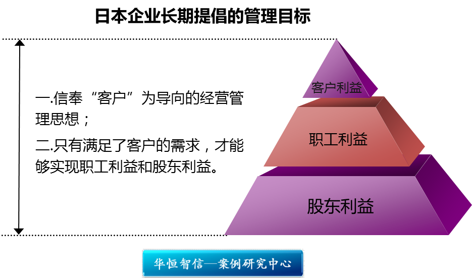 2、日本公司认为只有满足了客户的需求,才能够实现职工利益和股东利益。换句话说,满足客户需求是企业员工和股东谋求利益的前提条件。