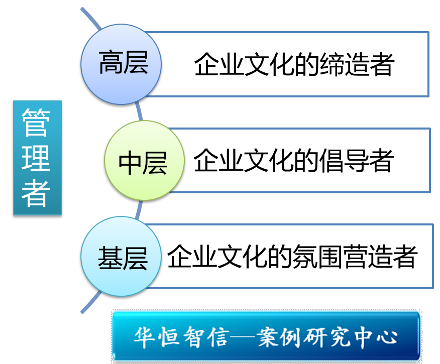 在企业文化的梳理和落地过程中,华恒智信顾问认为高层、中层、基层管理者有着不同的角色和定位,其中,高层管理者是企业文化的缔造者,中层管理者是企业文化的倡导者,基层管理者是企业文化的氛围营造者。而对于人事部门的工作人员,日常工作重点在于执行领导的决定,调查分析行业态势、企业客观条件,确定企业战略性目标,调配人力资源,创立开放式工作环境、带领新的团队加入“老”团队的活动,加强沟通,将“新旧”员工融合在一起,为领导在人员和物力资源调配和素质提高基础上提供合理化建议,在“碰壁”时以精神文化活跃公司氛围,并及时总结经验教训,依据原来的理念,和现在企业的实际需求,设计企业价值观念和行为规范,进而形成独特的、与时俱进的企业文化。