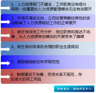 1、人力资源部门不健全,工作职责没有细分,导致一些重要的人力资源管理模块无法有效展开