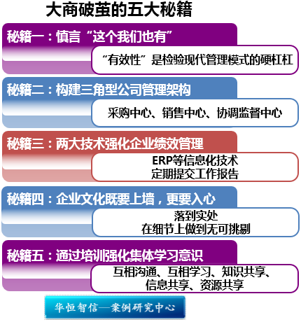 不管是最新锐的理论还是最前沿的实践证明,企业构建现代管理体系的终极目的是提高经济效益,以及有效处理和解决经营过程中的风险和机遇,创造优于同类企业的商业环境。现代信息共享的程度已经非常高,几乎所有现代管理的理念、技术和项目都为酒业大商所借鉴,因此我们在采访中提到某项先进的企业管理技术时,经常听到这样的话“这个我们也有”,其实这句话的背后隐含着另外一层意思,该项目的有效性没有体现出来。