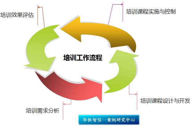 通常企业在设计培训工作流程时都会包括以下几个方面:培训需求分析、培训规划与设计、培训实施和效果评估,如下图某公司培训工作简化流程图所示: