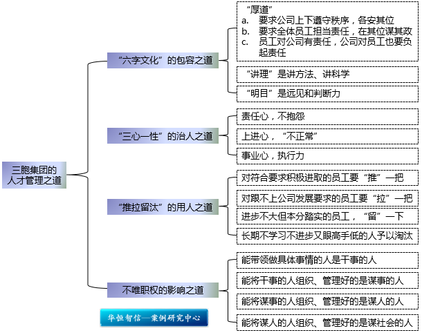 三胞集团的人才管理理念概括起来就是“三心一性”:“责任心,上进心,事业心和悟性”。