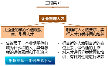 2. 明确对人才的要求,实行人才分类使用和培养。三胞集团把人才分为干事的、谋事的、谋人的、谋社会的,明确各类人才的职责。企业在用人上,需要明确岗位能力要求和胜任资格,把合适的人放到合适的岗位上去,做合适的工作。同时,企业应该对人才进行分类管理和培训,有针对性地进行培养,扬长避短,提高人才的能力,培养管理人员的核心技能,最大限度地发挥人才的效用。