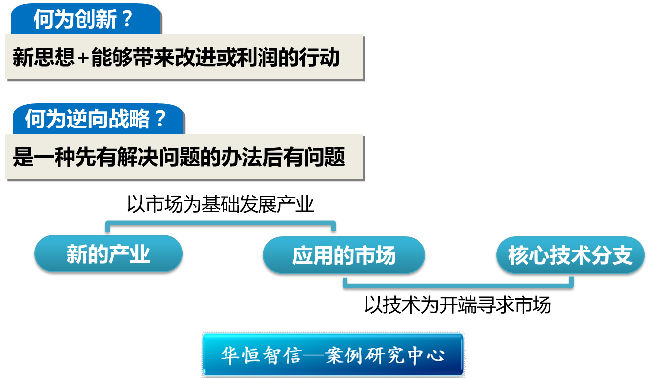 3M对创新战略的管理通过实施“逆向战略计划法”来保证创新能有效的为公司增长服务。值得一些制定创新战略的企业家们注意的是,3M并没有事先将重点放在一个特定的工业部门、市场或产品应用上,然后再开发已经成熟的相关技术。3M的做法正相反,是先从一个核心技术的分支开始,然后再为这种技术寻找可以应用的市场,从而开创出一种新的产业。