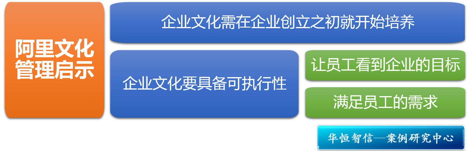 第二,企业文化要具备可执行性。这里的可执行性具体有两个要点。其一是要清晰地让员工看到企业的目标,并将目标分解细化落到个人,使每个员工都清楚企业追求的价值为何、自己该做哪些努力。其二是要满足员工的需求,激励他们朝那个方向走。在文化管理中,往往采用精神激励的方式满足员工的社交、尊重和自我实现需要,信息共享、沟通反馈、培训学习等都是非常常见的方式。此外,工作环境、特色活动、规章制度等有形的文化载体也是落实企业文化的重要保障。