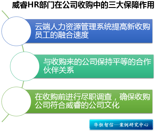 谈到人力资源部门在公司收购中扮演的作用,萨特解释说这主要有三大保障作用。“首先,威睿的云端人力资源管理系统帮助公司可以尽快完成新收购员工的融合过程。第二,我们对收购的公司没有持有上下级的立场,威睿和收购来的公司保持着平等的关系,把他们看成是合作伙伴。第三,人力资源部门会在收购前进行尽职调查,确保收购公司是否符合威睿的公司文化,他们团队是否愿意融入威睿。只有确定这点,我们才会推进收购工作。”
