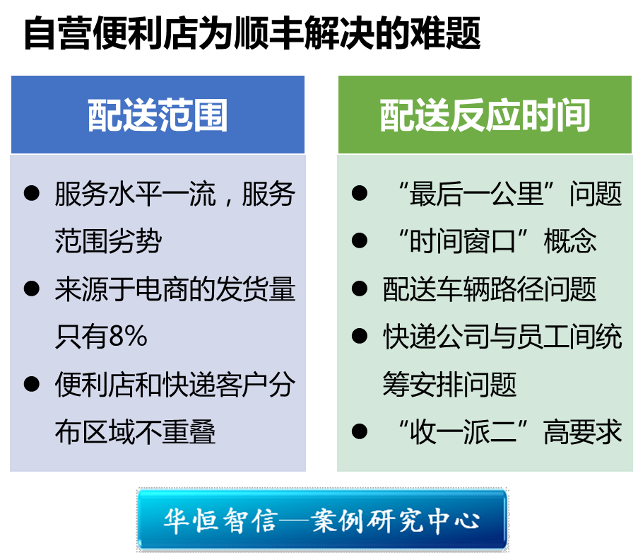 2.合作对象规模有限。在许多城市,都无法找到规模足够大、覆盖足够广的便利店品牌,这就迫使顺丰通过与多家分散的、不同品牌的便利店合作来弥补覆盖面的不足,由此带来的标准化运营难题不可避免地又会增加顺丰的管理成本。