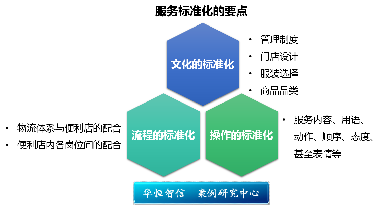 为了降低成本,统一服务质量,实现服务标准化,顺丰选择了自营便利店。此时,服务标准化问题依旧值得重视,华恒智信分析员认为有以下三个要点: