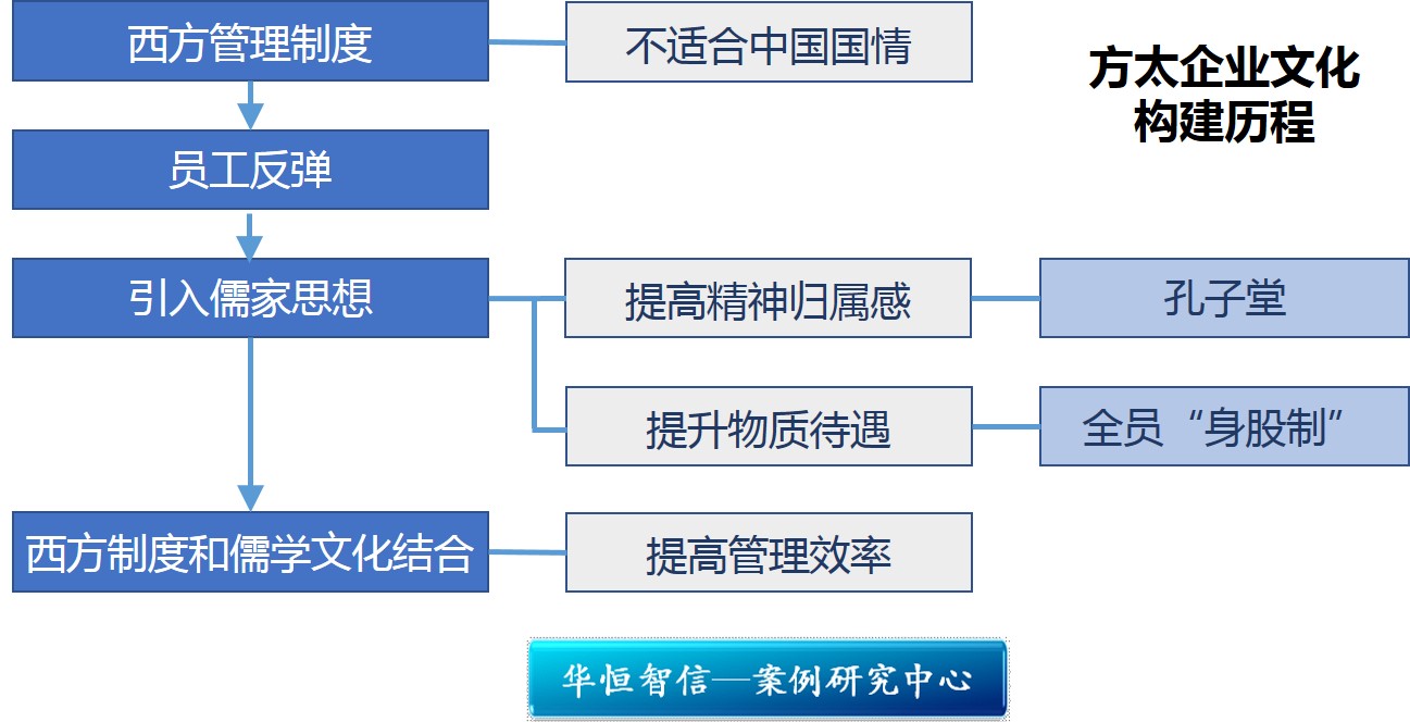 方泰集团坚信,文化是企业的灵魂。而在具体的实践中,也正是方太集团内部的儒学文化,为员工提供了强烈的归属感,为方太稳健走在行业前沿提供着最有力、最持久的支持。华恒智信人力资源管理专家认为:企业文化绝不是一句口号式的标语,他是企业精神理念的汇聚,是企业管理制度植根的土壤源。任何成功的管理制度,都一定是植根于其独特的文化土壤之中的。方太的成功同样如此,他最大限度地发挥了文化对于企业的带动作用。