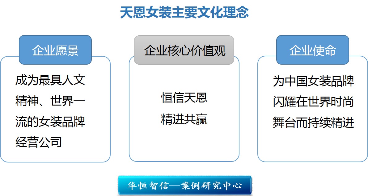 天恩女装诞生于时尚风情浓郁的上海。公司成立数十年以来发展快速,目前已成长为上海的第一女装品牌。然而,作为一家本土私企,在天恩发展需要“更上一层”,品牌传播需要“更深一层”的时候,企业并没有自己明确的愿景、使命与核心价值观,公司从中高层管理到基层员工,对于公司的品牌及公司发展坚持的方向与信念都缺乏一个清晰的认识。由此,天恩公司的创始人暨总经理成茂朝先生找到了企业文化顾问伙伴。