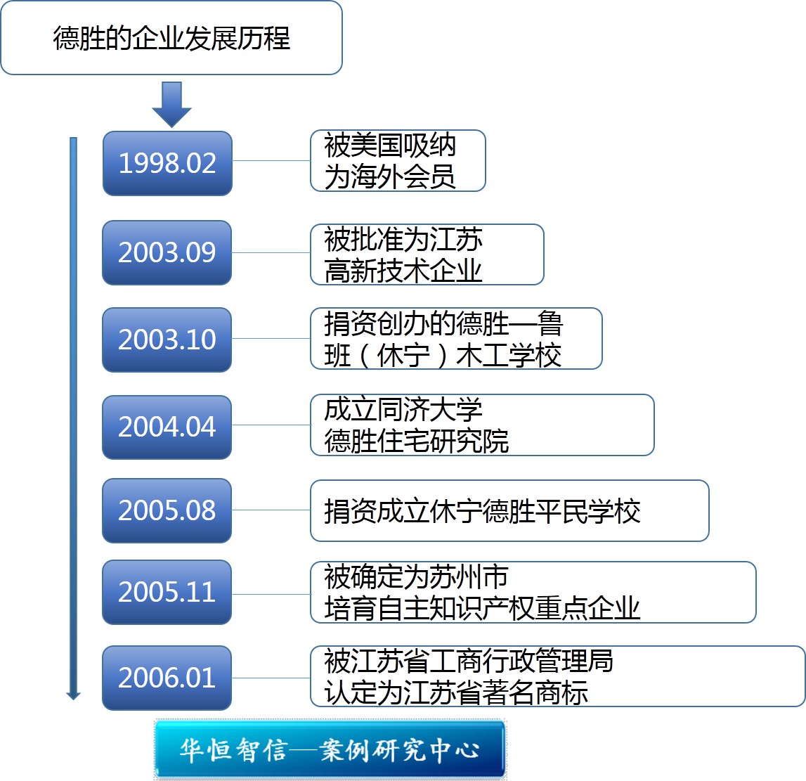 在德胜已经走过的企业历程中,我们列出如下重要事项来表征这个公司: