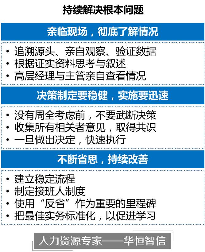 在建立了稳定的流程后,运用不断改进的工具以找出导致缺乏效率的根本原因,并采取有效的对策。