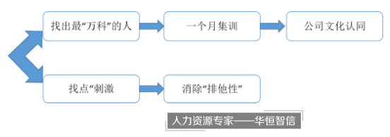 当万科面临类似的问题时,万科提出“找点‘刺激’”,在并购重组、跨境交易的过程中招聘一些外来人才,在多数人被贴上“万科化”标签后,为原有文化带来一定的冲击,为未来二三十年的发展储备潜力。华恒智信认为,企业在强化自身文化、扩大影响力的同时,也需要不时跳出自身文化的圈子,从外界听取不同的声音,促进企业进步。一成不变的、固化的企业文化是缺乏生命力的,能够适时进行相应调整才能使企业长期拥有凝聚力、活力和竞争力。