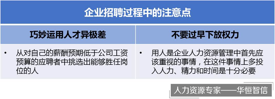 第一,要巧妙运用人才异级差。人在毕业或跳槽时会有希望得到更好待遇的想法,企业若想从对自己的薪酬预期低于公司工资预算的应聘者中挑选出能够胜任岗位的人,难度肯定会加大。但这样的人一旦被挑选出来委以相应任务,他们会为了感谢公司的重用和赏识而加倍努力,不仅证明公司用人的正确、还超额完成任务,为公司创造更高的效益。