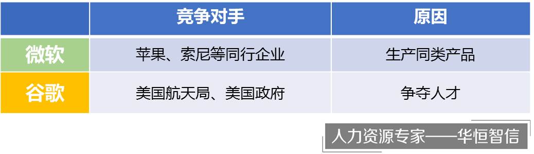 那我们又到了谷歌,我们也问谷歌的创始人Larry Page,谁是谷歌的竞争对手?我们期待谷歌也说,微软啊苹果啊等等,都是它的竞争对手。答案特别出乎我们意料。Larry Page说,NASA(美国宇航局),Obama administration(奥巴马政府),是我的竞争对手。我们问为什么呢?他说,谁跟我抢人,谁就是我的竞争对手。