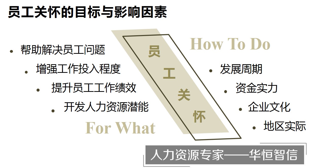 员工关怀在国外多称为EAP(Employee Assistance Program),旨在帮助解决员工及其家庭成员的各种心理和行为问题,增强员工的工作投入度、满意度和对组织的认同感,提升员工的工作绩效,从而最大程度地开发组织人力资源潜能。