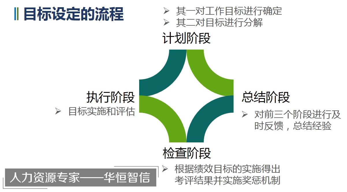 在实际进行中可以考虑将整个目标设定的过程划分为四个阶段,也就是计划、执行、检查和总结。