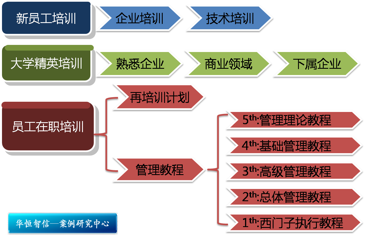培训内容:根据管理学知识和西门子公司业务的需要而制定,随着二者的发展变化,培训内容需要不断更新。