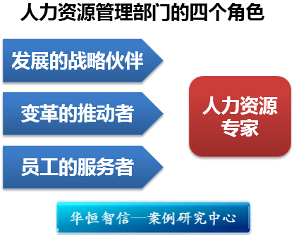 从这个案例中可以看出,企业人力资源管理的职能正在转变,人力资源部门越来越承担一种为员工服务的角色,尊重员工的需求,给员工切实的关爱。对于这种人力资源部职能的转变,人力资源管理部门应当担任怎样的角色呢?华恒智信认为,日常人力资源管理职能应再次向直线经理转移,而人力资源管理部门的主要任务应转移到人力资源战略上,另外,也可以选择将这种日常人力资源管理工作外包出去的方法。而对于人力资源管理部门,主要要担任好这四个角色。