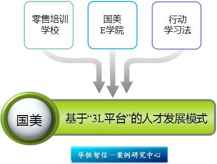 正是基于以上四大基本原则,国美培训体系搭建了“3L平台”。该平台由国美零售学校(Store of Learning)、国美E学院(E-LAERNING)、行动学习法(Action Learning)共同构建组成。