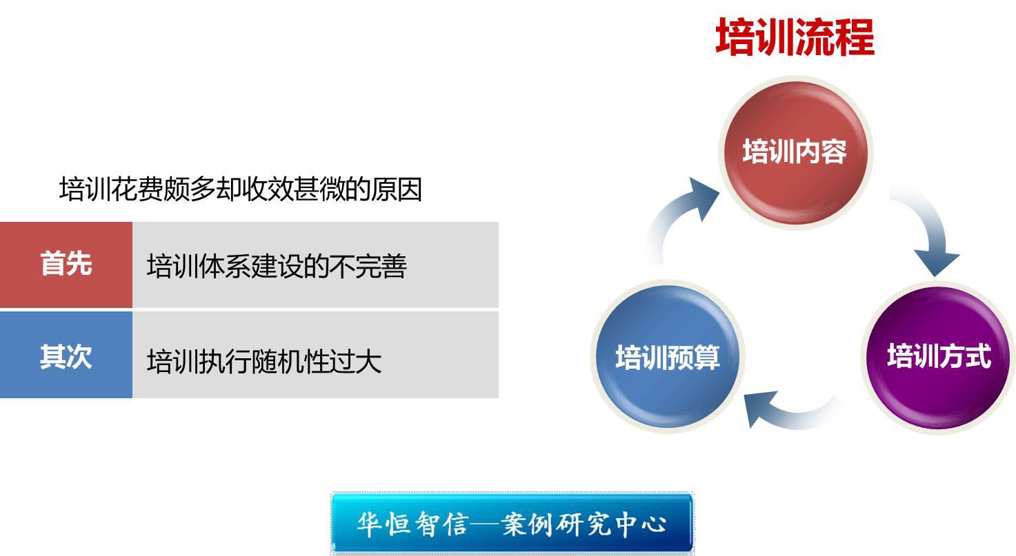 虽然大部分企业都对员工采取了多种多样的培训手段,但是,依然有很多企业花费颇多却收效甚微。究其原因,华恒智信认为有两个方面,首先是培训体系建设的不完善;第二是培训执行随机性过大,缺乏计划性和系统性。员工培训的主要目的应该是解决企业所遇到的培训问题,提升员工能力以达到企业对员工的要求。所以,如果安排培训的时候目的不明确,缺乏系统性,只会导致培训管理与发展战略脱节,与人员能力提升脱节的现象。