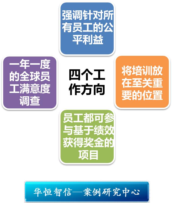 在这样一个多样化、不断变化的企业环境中,为了保持高昂的员工士气、生产力和忠诚度,IBM设定了一个新的工作重心,注重人力资源的“资源”组成部分,并设定了四个工作方向。