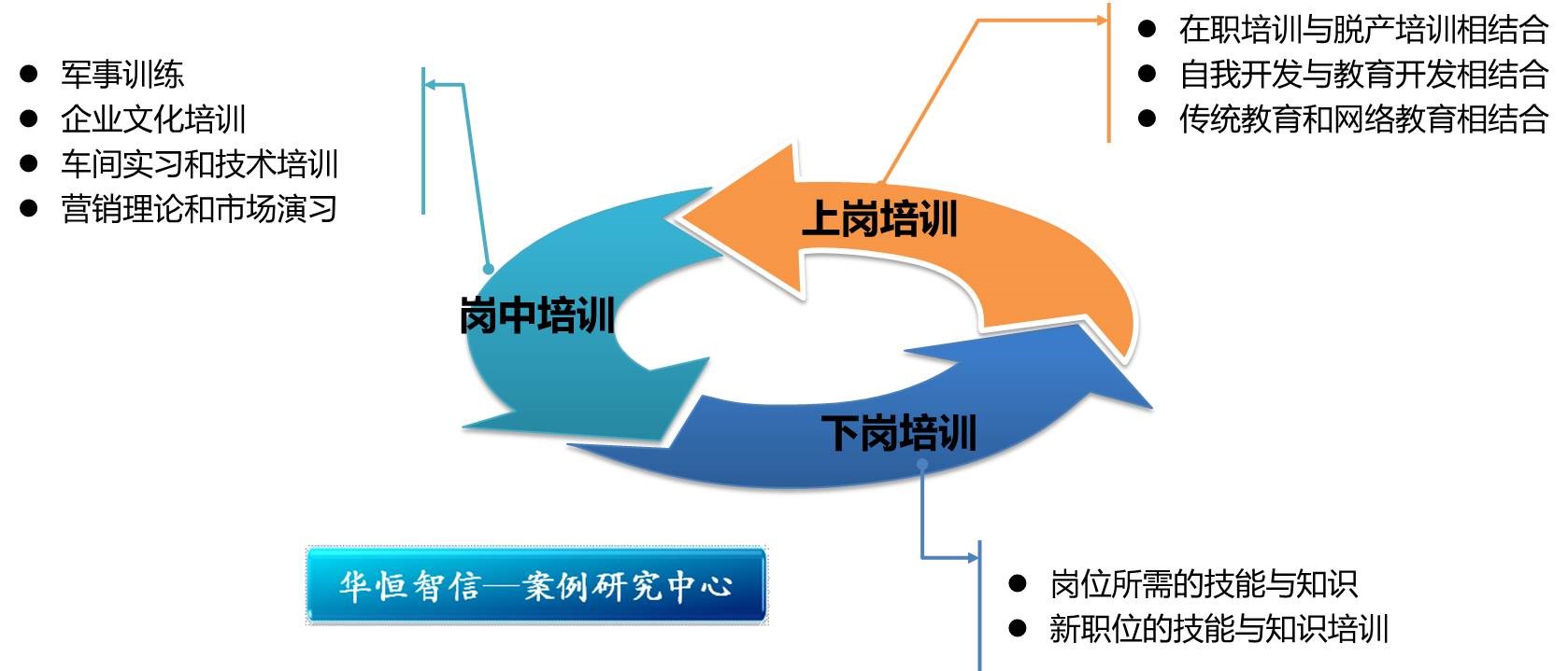 华为培训主要有3种,上岗培训,岗中培训,下岗培训。而且这三种培训是一个体系: