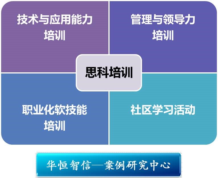“思科将培训分成四大类:技术与应用能力培训、管理与领导力培训、职业化软技能培训、社区学习活动。”赵瑞介绍说。在这四大模块中,WebEx(网迅)、网真等是思科最具特色的两种实时培训模式,也是互动效果最好的学习载体。