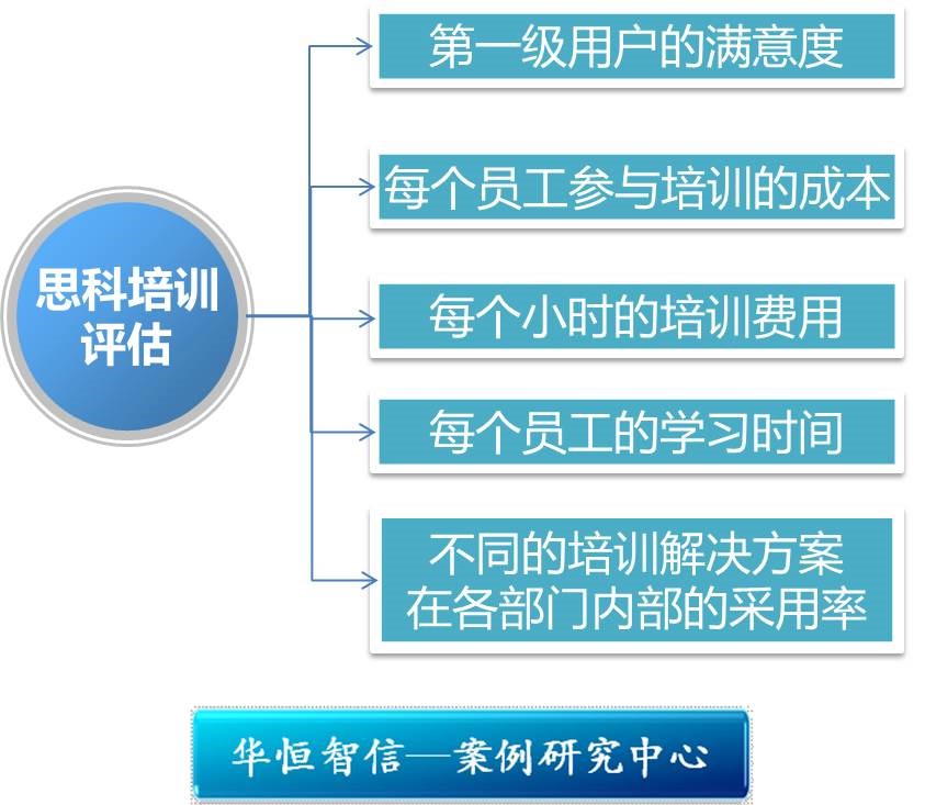 对于培训与学习效果的评估,思科通过五个“看”来较好地评测其回报率:一看第一级用户的满意度,主要采取用户调查表实现;二看每个员工参与培训的成本;三看每个小时的培训费用;四看每个员工的学习时间,比如思科每年每人培训的平均课时量已增至约31个小时;五看不同的培训解决方案在各部门内部的采用率。