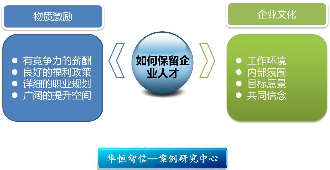 首先,物质激励是最常见的留人方式。如果企业能够提供有竞争性的薪酬和福利政策,无疑能对员工形成巨大的吸引力。但值得注意的是,当员工所处的职业位置达到一定程度时,高薪也难以让员工满意。根据马斯洛的层次需求原理,员工的需求会随着收入的提高不断变化,最终转向自我实现需求。此时,薪酬上的激励会变成“保健因素”,所以企业不妨对员工制定更为详细的职业生涯规划以及自我发展的机会,通过帮助员工实现自我价值来赢得员工的青睐。另外,良好的企业文化也是留人的有效方式。文化氛围好的企业,能从价值观念上对员工形成强大的磁力,员工将在潜移默化中更依赖企业的工作环境,内部氛围,目标愿景,以及共同信念等,从某种程度上讲,这种精神上的依赖往往最难抗拒,这也是为何诸多企业如此重视企业文化的原因之一。