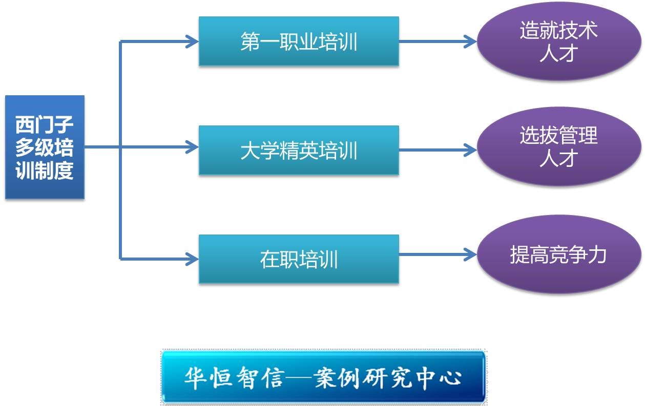 从新员工培训、员工再培训到大学精英培训,西门子公司对员工的培训基本上涵盖了业务技能、管理、交流能力等众多方面的培训,这样的培训使得员工的知识、技能、管理能力得到不断提升,更使得公司新员工在正式岗位工作前就具有较高的业务能力,保证了大量的生产、技术和管理人才储备。